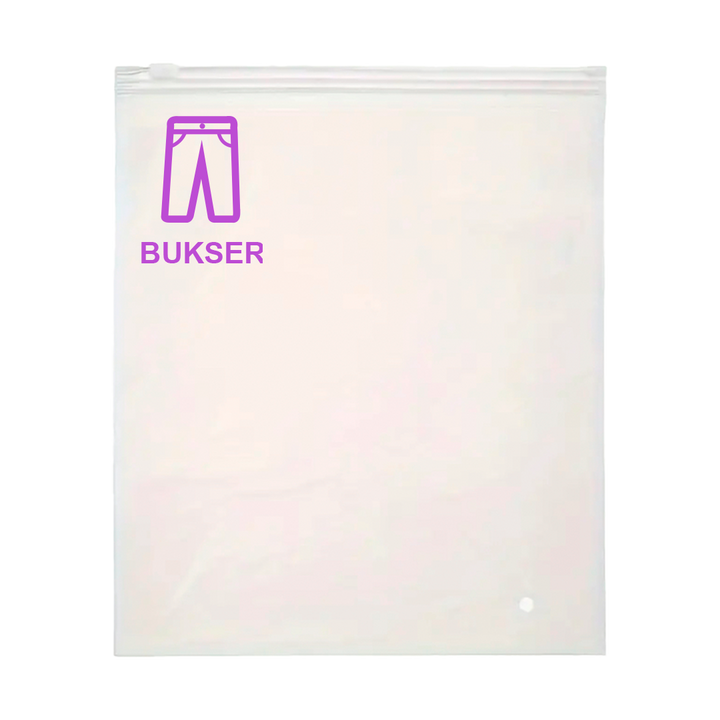 Vi anbefaler at man bruger standard poserne, op til størrelse 110-116. Men altid den store pose til trøjer, sweater mm. Så sikre du brugbarheden på dine poser i længere tid.