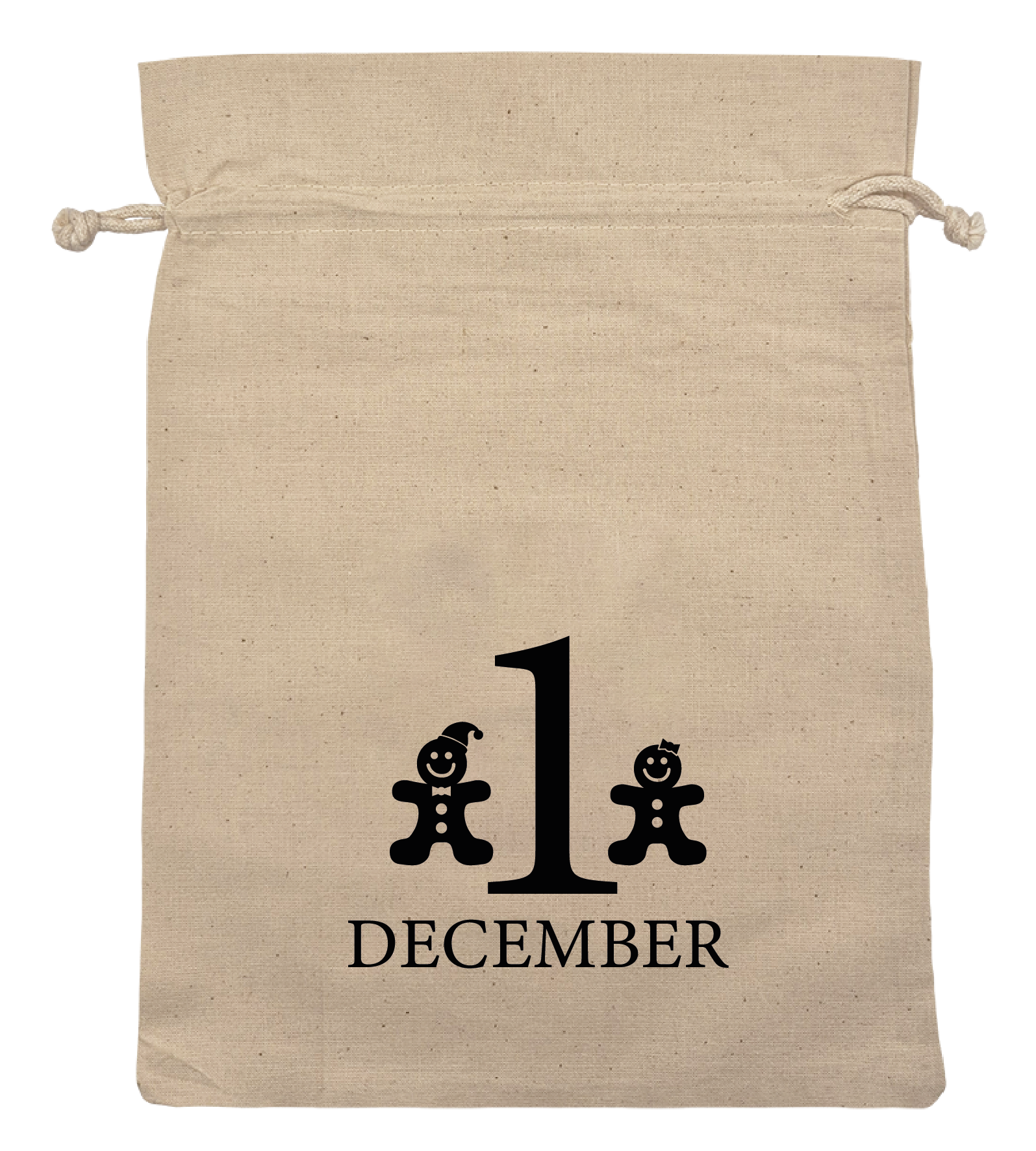 1-24 kalenderposer i blødt bomuld – et bæredygtigt valg, der kan bruges år efter år. Tilføj personlige detaljer, og gør hver dag i julen til noget helt særligt.