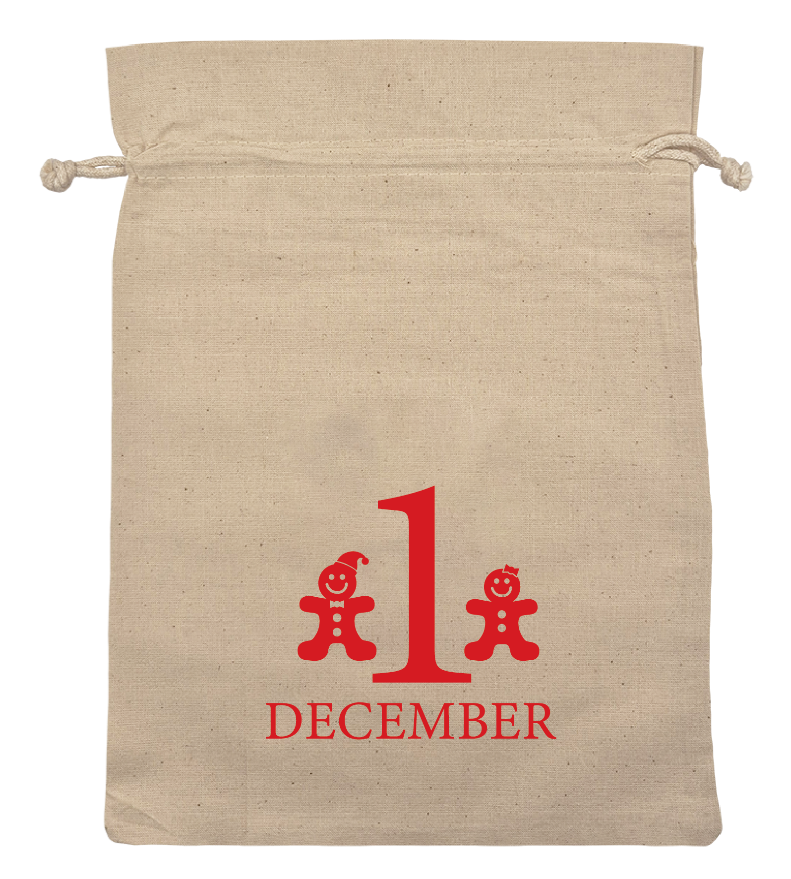 1-24 kalenderposer i blødt bomuld – et bæredygtigt valg, der kan bruges år efter år. Tilføj personlige detaljer, og gør hver dag i julen til noget helt særligt.