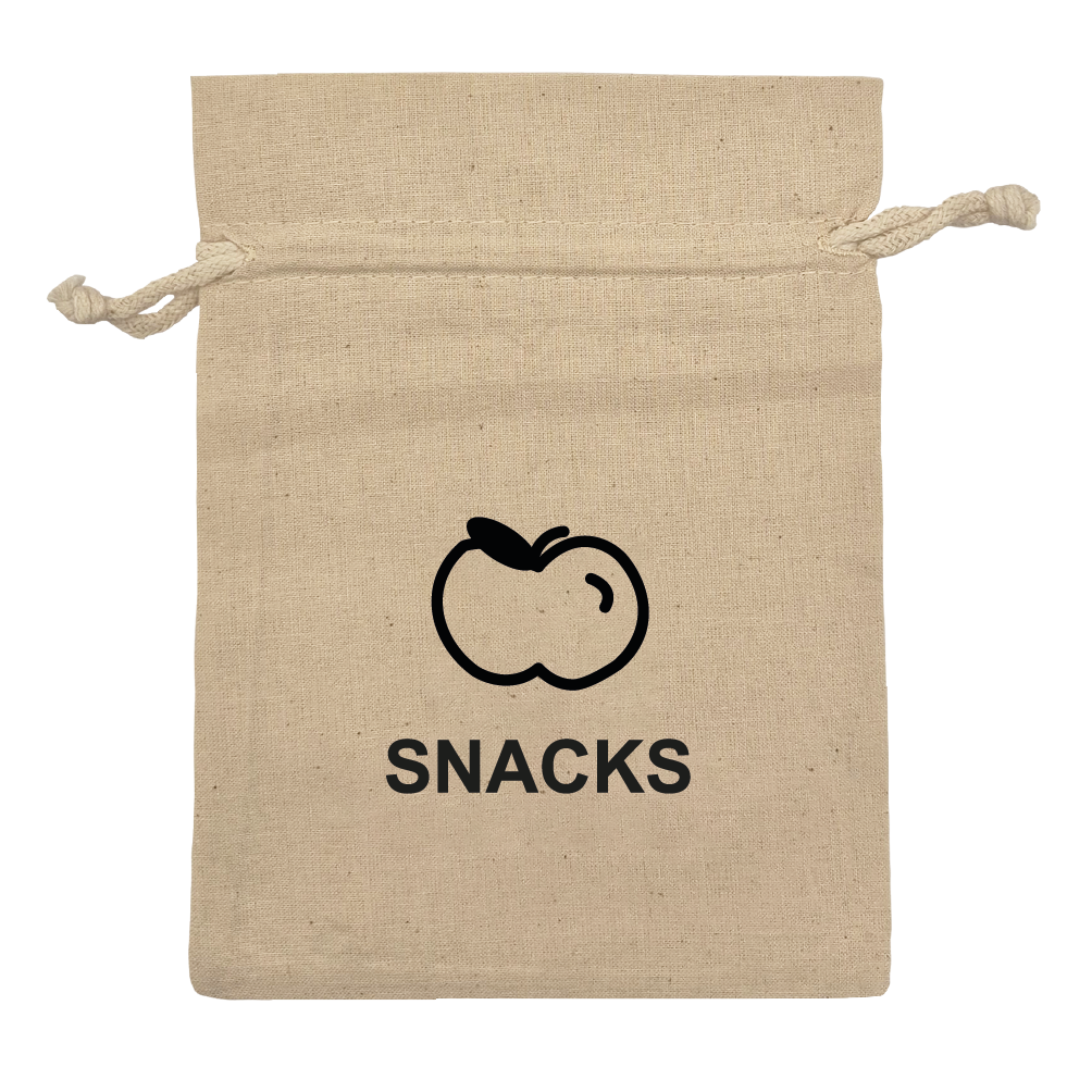100% genanvendt bomuldsposer med ikonet snacks
