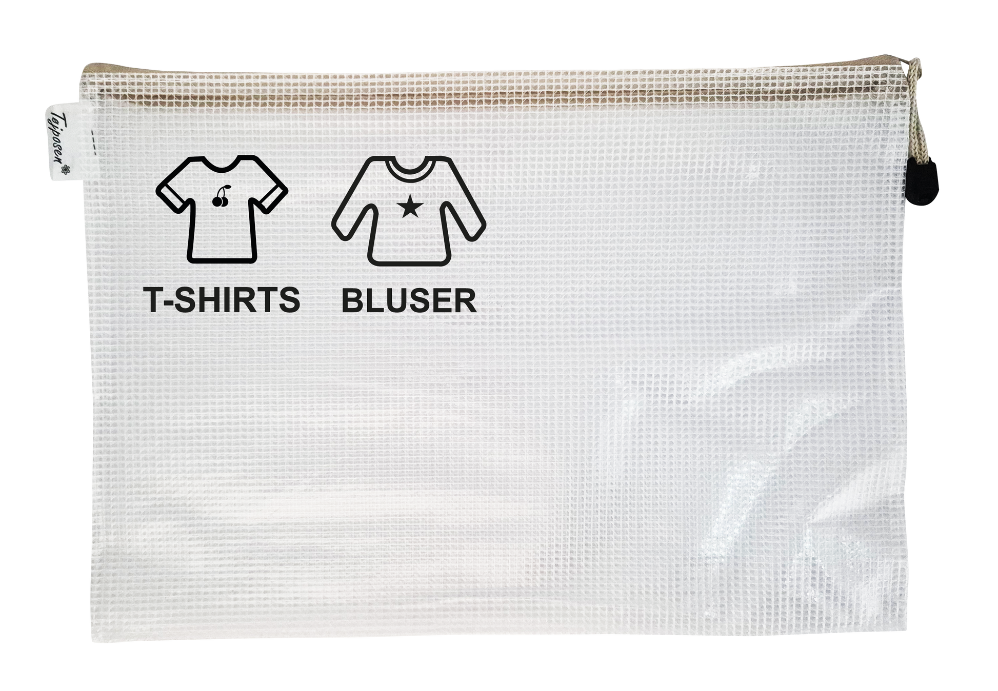 Vi anbefaler at man bruger standard poserne, op til størrelse 110-116. Men altid den store pose til trøjer, sweater mm. Så sikre du brugbarheden på dine poser i længere tid.