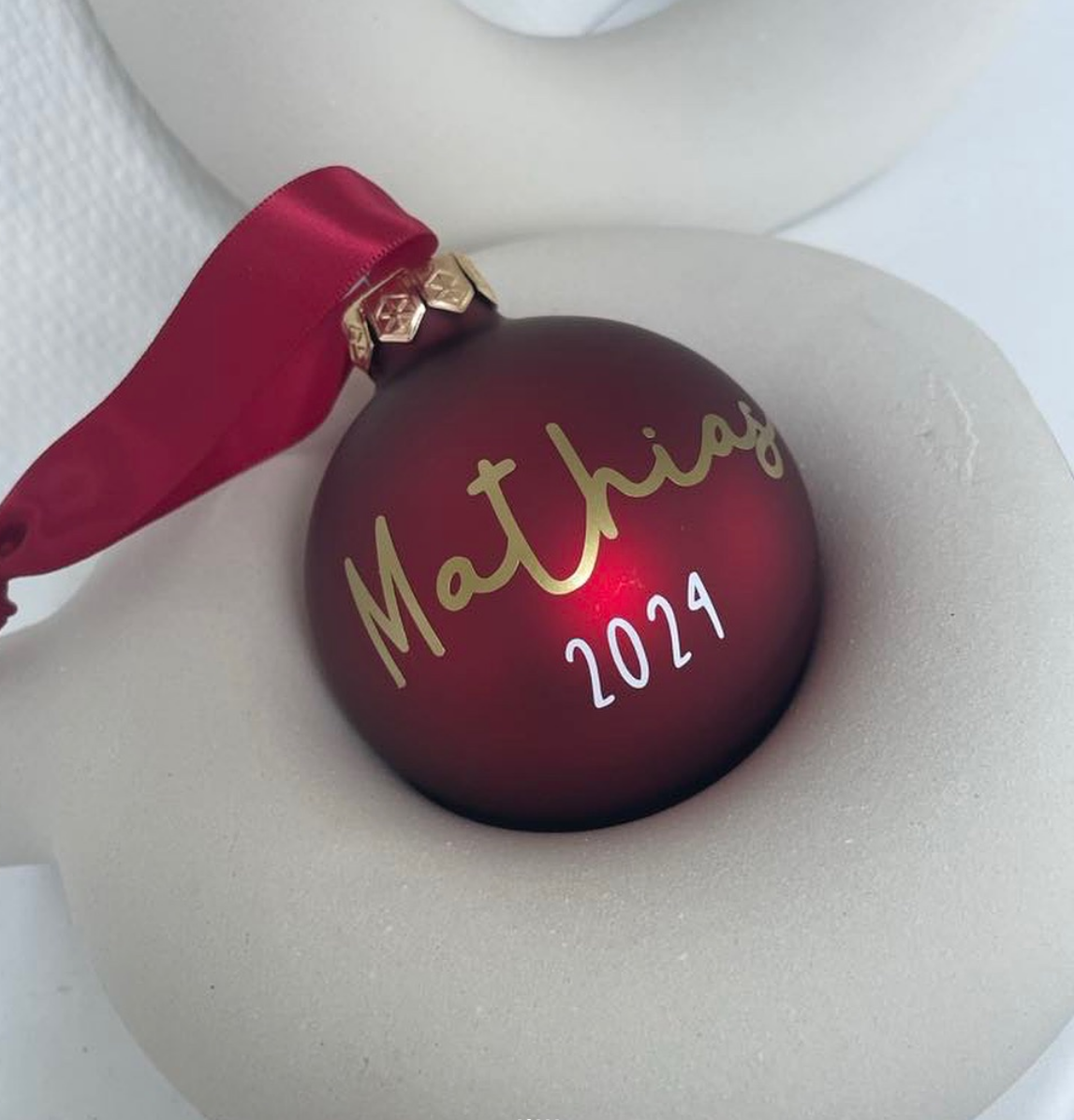 Forevig dit barns jul med en personlig julekugle med navn og årstal.