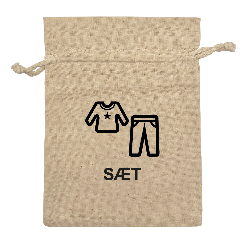 100% genanvendt bomuldsposer med ikonet bluse og bukser